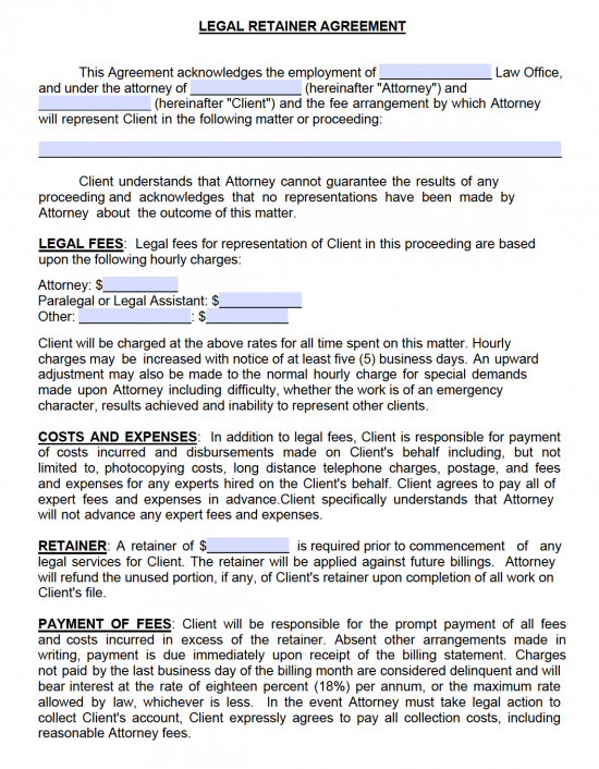 Free Retainer Agreement For Attorneys Lawyers Samples